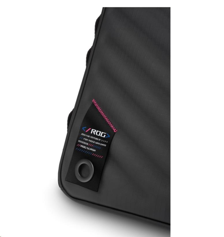 Díky nenápadnému černému designu zůstane brašna na cestách nepovšimnuta. Brašny ROG SLASH jsou sice nenápadné, ale pro ty, kteří si jich všimnou, představují odvážné prohlášení.