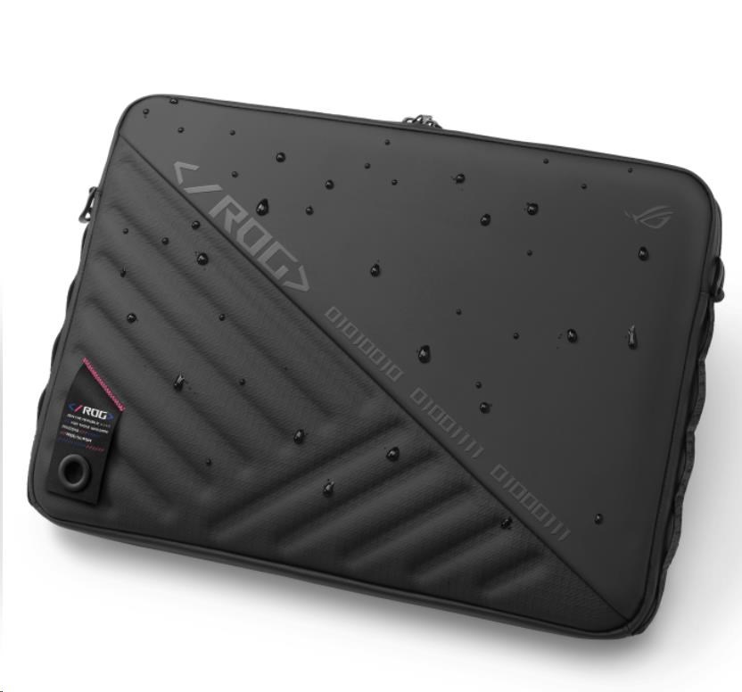Díky tříbodovému popruhu je brašna ROG SLASH Sleeve 4.0 pohodlná, ať už cestujete kamkoli. Nastavitelný ramenní popruh udržuje brašnu pohodlnou bez ohledu na vaši velikost nebo preferovanou orientaci při nošení. Materiály Ripstop PU a TPU s polyesterovou povrchovou úpravou odolné proti roztržení a vodě udrží vaše věci v bezpečí a suchu bez ohledu na to, kam vás vaše cesty zavedou.