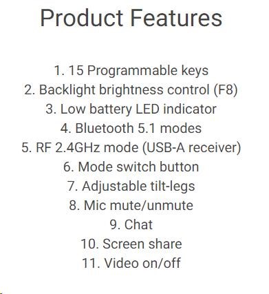 Rozhraní klávesnice:Bezdrátová; Lokalizace klávesnice:CZ/SK; Výbava klávesnice:Podsvícené klávesy
