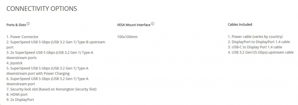 Použití:Herní; Rozlišení displeje:1920x1080 (Full HD); Úhlopříčka displeje ("):24.5; Výbava:Reproduktory, VESA montáž, Pivot; HDMI počet:1; HDMI verze:2.1; DP počet:2; DP verze:1.4; USB počet:5; Doba odezvy (ms):1; Formát obrazovky:16:9; Typ panelu:IPS; Jas (cd/m2):400; Kontrast:1:1000; Obnovovací frekvence displeje (Hz):255