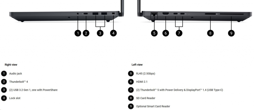 6 cell, 96Whr, ExpressCharge™ Capable, standard battery, 280W AC adapter, USB Type C |