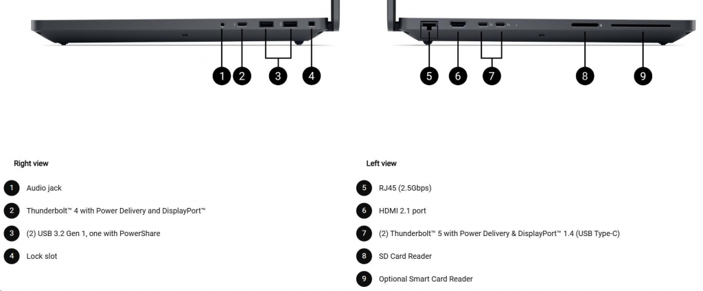 6 cell, 96Whr, ExpressCharge™ Capable, standard battery, 280W AC adapter, USB Type C |