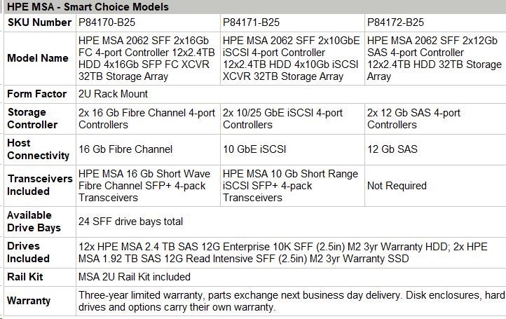 HPE MSA 2060 LFF 2x16Gb FC 4-port Controller 7x8TB HDD 4x16Gb SFP FC XCVR 56TB Storage Array Smart Choice