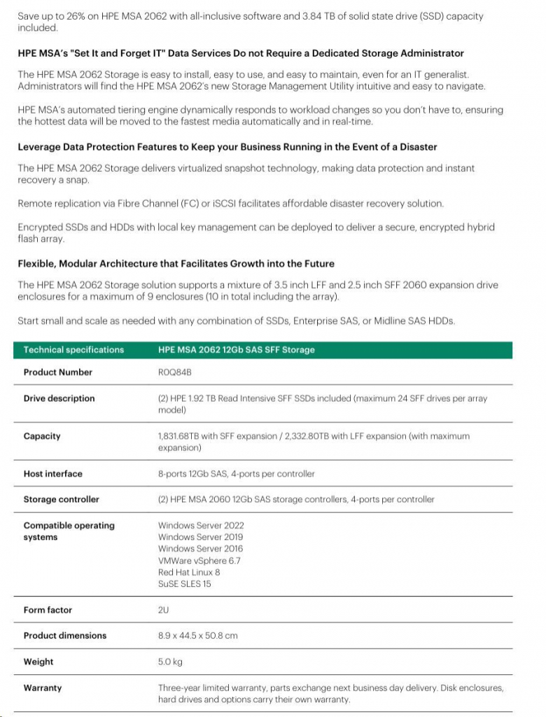 HPE MSA 2062 12Gb SAS SFF Storage