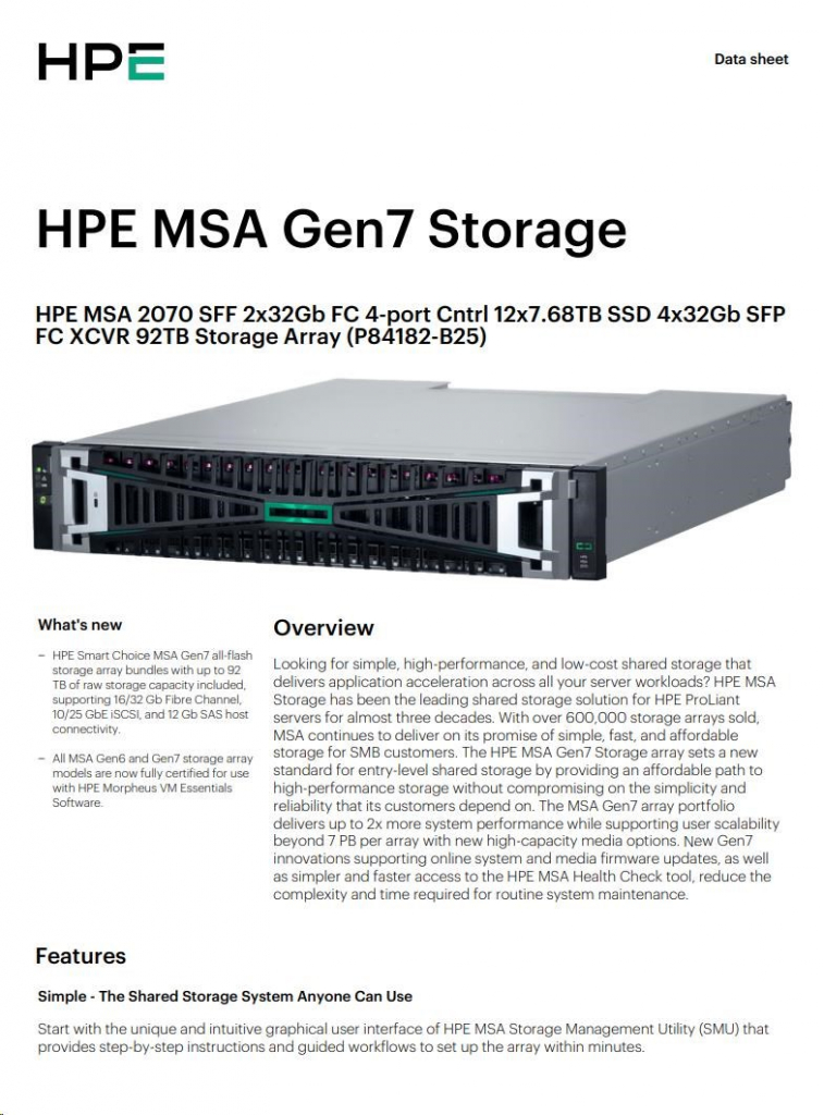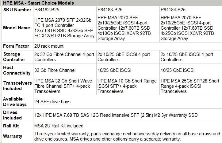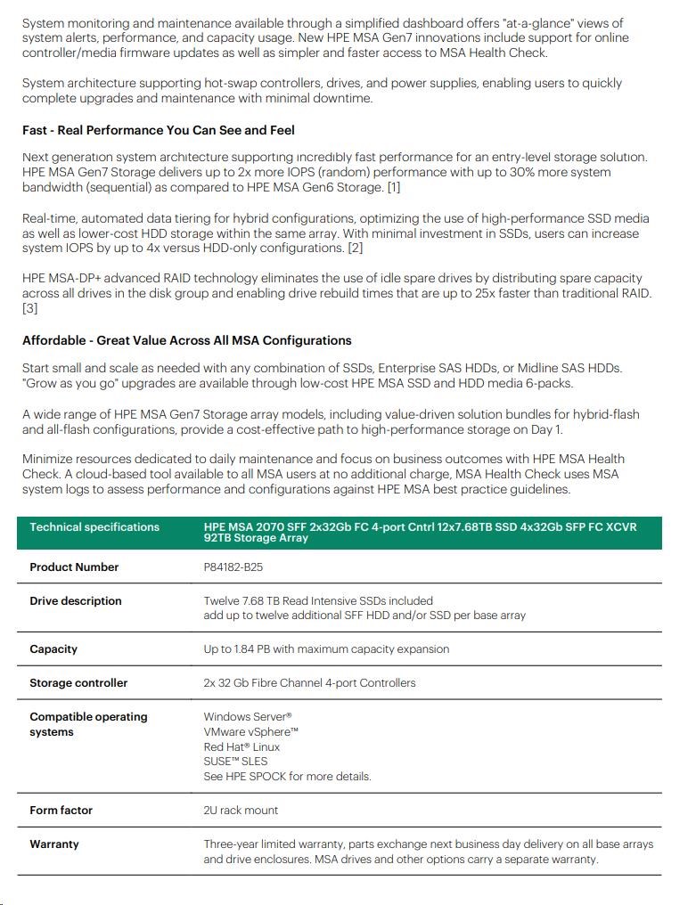 HPE MSA 2070 SFF 2x32Gb FC 4-port Controller 12x7.68TB SSD 4x32Gb SFP FC XCVR 92TB Storage Array Smart Choice