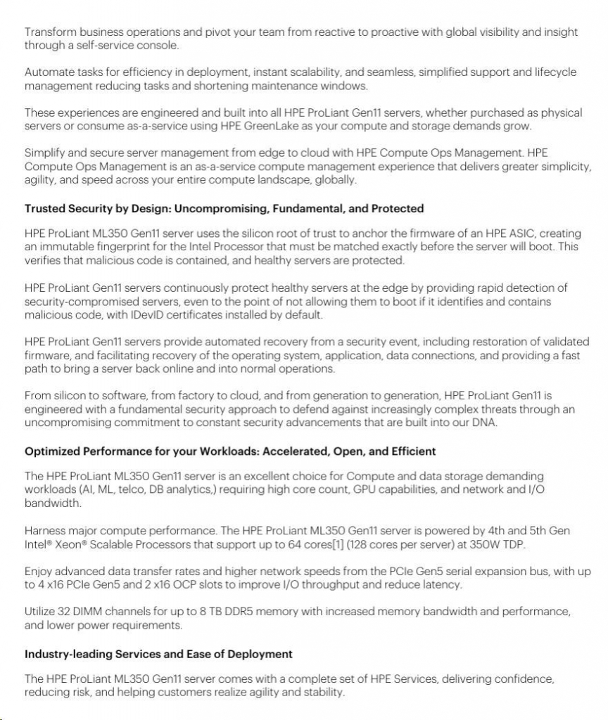 HPE PL ML350g11 4510 (2.4G/12C) 1x32G (P64706) 2x4TB/7.2k SATA 4LFF VROC 2x1000W 4p1G Smart Choice