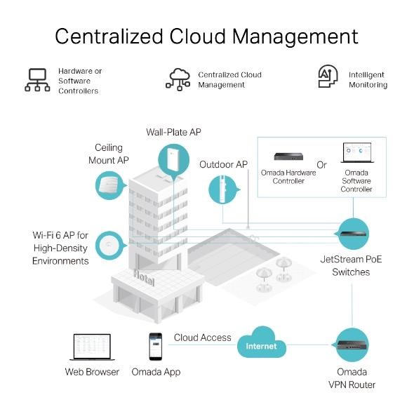- Centralizovaná správa: Cloudový přístup a aplikace Omada pro maximální pohodlí a snadnou správu.