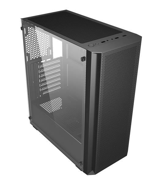 Provedení skříně:Midi Tower; Barva skříně:Černá; Počet pozic 3.5" (HDD):2; Počet pozic 2.5" (SSD):2; Bočnice:Prosklená; Podsvícení:bez podsvícení; Vybavení PC skříně:Přední Audio panel, Přední USB panel, Průhledná bočnice
