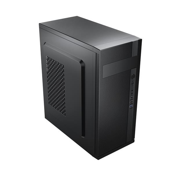 Provedení skříně:Midi Tower; Barva skříně:Černá; Počet pozic 5.25":1; Počet pozic 3.5" (HDD):2; Počet pozic 2.5" (SSD):1; Bočnice:Plná; Podsvícení:bez podsvícení; Vybavení PC skříně:Přední Audio panel, Přední USB panel